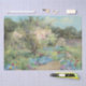 This design features a watercolor painting by the Irish artist Mildred Anne Butler (1858–1941). It depicts a beautiful garden with lots of bright and colourful flowers growing. There are red and yellow tulips growing in the foreground. A winding path makes its way through the garden, meandering around a twisted tree that is flowering with pink cherry blossom. Further in the distance there appears to be lake or stream, which is surrounded by a dense forest of trees. The garden is located in Kilmurry, Ireland.
