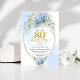 Celebrate a remarkable milestone with this 80th birthday invitation featuring one of today’s most trendy and elegant color combinations: blue and gold. Designed with soft watercolor blue hydrangeas, fresh eucalyptus greenery, and refined gold floral accents, this invitation brings a sense of calm sophistication and joyful celebration to an unforgettable occasion.