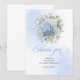 Boho wedding thank you card with blue hydrangea watercolor flowers and eucalyptus greenery, professionally printed by Zazzle on premium cardstock with crisp detail, rich colour, and a smooth elegant finish.