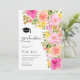 Calling class of 2024! Pretty beautiful garden spring summer open house graduation party with pretty bold and vibrant pink, peach and yellow flowers and greenery leaves, with a brushed script typography on an elegant editable on white background