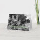 Beautiful Abyssinian cat hiding among the flowers. Black and White print, with Congratulations wish.