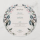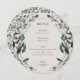 This elegant and chic wedding menu features painted watercolor florals in blue and pink hues and comes with a matching floral pattern on the back.