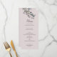 This elegant and chic wedding menu features painted watercolor florals in blue and pink hues and comes with a matching floral pattern on the back.
