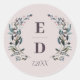 Garden Crest | Mauve Purple Wedding Monogram Date Classic Round Sticker
