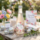 These garden disco bachelorette favour stickers are designed for party favours, gift bags, and mini champagne bottles. The design features a colourful watercolor floral frame with subtle disco elements, combining a floral party theme with a modern disco style.