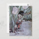 Cute fairy with spectacles and a feather in his hair hiding in a garden of tulips. Beautiful illustration by Arthur Rackham. “When he heard Peter's voice he popped in alarm behind a tulip.” From the novel, “Peter Pan in Kensington Gardens”, a novel written by J. M. Barrie, published in 1906.