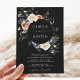 Garden Floral Circle Frame Black Wedding Invitation