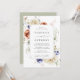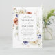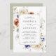 This floral wedding invitation features watercolor illustrations of flowers and leaves in white, terracotta, blue violet, blush pink, and green with a ticket frame. For more advanced customisation of this design, please click the BLUE DESIGN TOOL BUTTON above! Matching items are also available..