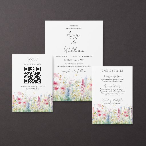 Garden Flower Watercolour Modern Boho Wedding Invitation