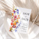 With vibrant watercolor florals and stylish botanical greenery, this Garden Flowers Elegant Wildflower Wedding Save the Date is perfect for any summer, spring, or fall celebration. Captivate your guests with trendy modern rustic vibes, showcasing the beauty of nature in every detail. The unique and on-trend design features elegant script calligraphy that adds a touch of sophistication to your stationery. Whether you're planning a garden-inspired affair or a boho chic celebration, this save the date card is the perfect way to announce your wedding in style. Order now and let your love blossom with this stunning wildflower-inspired design!