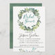 Chic watercolor garden foliage wreath bridal shower invitation with matching green watercolor backing. Personalise text font style, colour, and size.
