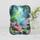 A tiny girl and a butterfly with iridescent wings perched on a giant flower in a lush jungle, accompanied by a colourful toucan. Large leaves and vibrant flowers surround them, creating a magical, whimsical scene. Digital Art