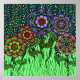 This poster has colourful fantasy flowers, grass, and willow branches glowing in front of a dark night sky.