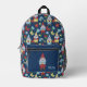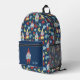 Garden Gnomes and Flowers Navy Blue Patterned Printed Backpack