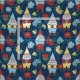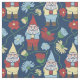 Garden Gnomes with Flowers Navy Blue Patterned Fabric