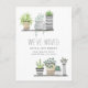 Charming and modern moving announcements let friends and family know about your new home sweet home! Design features two shelves of potted plants and watercolor greenery, with your custom announcement (shown with "we've moved"), your name(s) and change of address details. Add a personalised message to friends and family on the reverse side, with space for your stamp and recipient addressing.