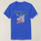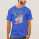 Fun Garden Guru design features a clay pot, garden tools, seed packets, dragonfly and little red ladybug. Deep blue text art says Garden Guru. Light blue floral pattern background for unique gardener gift idea.