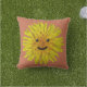 Photo of bright yellow Dandelion flower. On one side the flower has a drawn happy face, while the other side shows the flower with no face. One side has red background, while the other has green background - these colours can be adjusted by you. There is a softening filter for a fluffy effect, this can be removed if you prefer brighter and cleaner colours. Create two or three pillows with different colours and you can mix and match on your patio :)