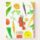 A garden journal that can be used as a planner and logbook decorated with a variety of colourful vegetables illustrated with watercolor. On the front and back are text areas that you can edit to fit your needs. The inside pages and spine colour can be changed as well.