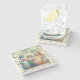 The coasters are gorgeous, a quality feel and heavy weight. They look like a precious archeological find. A rustic stone juxtaposed with a modern floral black and white print. I like the way the print goes slightly imperfect on the cut stone edges giving them a kind-of natural beauty.