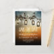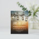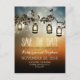 romantic and rustic save the date postcards with garden lights - oil lanterns hanging on the tree branch. Perfect save the date for rustic country wedding theme. Unique night lights wedding suite and trendy whimsical stationary.