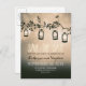 romantic, brown and rustic save the date postcards with garden lights - oil lanterns hanging on the tree branch. Perfect save the date for rustic country wedding theme. Unique night lights wedding suite and trendy whimsical stationary.