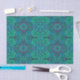 Tissue paper featuring bohemian pattern in mint green, teal and violet colours. Whimsical floral arabesque - fantastic flowers and woman faces.