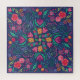 A swirling mandala of flowers and botanicals, in a bright colours on a dark blue background.
