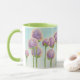 Enjoy your coffee with the Purple Sensation Allium. Long-stemmed Allium flowers, with an air of simplicity and grace, stretch heavenward, their slender forms reaching for celestial heights. Suspended from these sturdy stems, fluffy lavender balls dangle like enchanted orbs as if plucked from a fairy's secret garden. These blooms exude an otherworldly charm, casting a spell of magic and allure. They possess an exotic and rare quality as if they've been transported from a far-off tropical paradise. Their fun and eye-catching allure captivates the senses, making this mug a delightful visual escape!