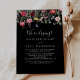 This garden multicolor wildflower elopement reception card is perfect for a modern post elopement party. The design features a multicolored assortment of pink, blush, purple, yellow, white, violet, red, burgundy wild flowers in a black background.