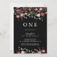 This garden multicolor wildflower first birthday party invitation is perfect for a modern birthday party. The design features a multicolored assortment of pink, blush, purple, yellow, white, violet, red, burgundy wild flowers in a black background.
