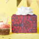 Wrapping paper featuring bohemian pattern in red, violet and black colours. Whimsical floral arabesque - fantastic flowers and woman faces.