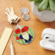 This keychain is much larger than I thought it would be. It would be great for finding keys easily in a handbag because of the large size. It's metal which I didn't expect. For some reason, I thought it would be plastic. The design is printed on metal and the back side is plain silver. It is very light weight and feels kind of cheap..like tin. The key ring and metal chain seem to be of good quality. I didn't have high expectations since it was only a few bucks. I bought it as an add on to a gift for a friend who loves gnomes. I figured she could use it as a keychain or on a bag/suitcase as a pull. Printing was great! Bright vibrant colors, no defects, and fine detail on the grass ridges.