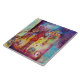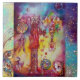 Colourful, whimsical beauty of flying faeries,unique mixed media painting .Elegant design in gold sparkles,vibrant blue,green,red, pink,yellow,teal,purple colours with golden and silver foil, The theme concerns archetypes and mediaeval alchemic symbolism . This is a distilled vision from occidental and oriental collective imaginary searching remote images from the deep in the mysterious garden of the lost shadows.