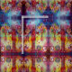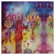 Colourful, whimsical,unique mixed media painting .Elegant design in gold sparkles,vibrant blue,green,red, pink,yellow,teal,purple colours with golden and silver foil, The theme concerns archetypes and mediaeval alchemic symbolism . This is a distilled vision from occidental and oriental collective imaginary searching remote images from the deep in the mysterious garden of the lost shadows.