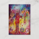 Colourful ,artistic and whimsical design Vibrant ,mystical ,enchanted world in bright red,pink,yellow,brown,blue.green,gold sparkles .Mixed media painting with golden and silver foil .The theme concerns archetypes and mediaeval alchemic symbolism . This is a distilled vision from occidental and oriental collective imaginary searching remote images from the deep in the mysterious garden of the lost shadows.