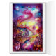 Surreal ,colourful, whimsical,fantastic mixed media painting in gold sparkles, blue,green,red, pink,yellow,teal,purple colours with golden and silver foil, The theme concerns archetypes and mediaeval alchemic symbolism . This is a distilled vision from occidental and oriental collective imaginary searching remote images from the deep in the mysterious garden of the lost shadows.