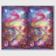 Colourful, whimsical,unique mixed media painting .Elegant design in gold sparkles,vibrant blue,green,red, pink,yellow,teal,purple colours with golden and silver foil, The theme concerns archetypes and mediaeval alchemic symbolism . This is a distilled vision from occidental and oriental collective imaginary searching remote images from the deep in the mysterious garden of the lost shadows.