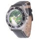 My husband loves the watch, he likes the dial, the graphics, the band, and it keeps perfect time.
