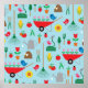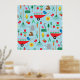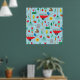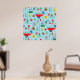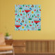 Transform your wall into a vibrant spring sanctuary with this whimsical garden poster. The bright blue background is filled with a charming pattern of wheelbarrows, blooming tulips, and busy honeybees that will add a pop of colour to any room. It is a perfect piece of wall art for a home office, potting shed, or a childs nursery, offering a playful and artistic look for nature enthusiasts.