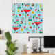 Garden Pattern Spring Flowers and Gardening Tools Poster