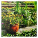 There is nothing so peaceful and relaxing as wandering around a lovely garden on a summer day. Share this feeling by giving a gift using this design. of a beautiful garden pond with a clay pot of marigold on the edge.