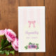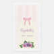 Shower for a baby girl featuring blooming garden roses in shades of blush pink and lilac. Trendy cream archway and pink bow against a pastel striped background. Some design element(s) licensed under CC0