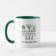 A mug with an illustration of garden tools monogram including spade, leaf rake, shovel and rustic grass. Perfect for a professional gardener birthday or to advertise your business when you work.