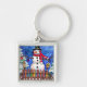 Original watercolor painting by Sandra Gale of a traditional snow man standing in front of a picket fence with glowing Christmas lights reflecting off the winter snow. Birds, bird houses, and Christmas ornaments all make this a classic Christmas scene that looks great on wrapping paper, holiday cards and more!
