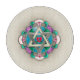 This lovely charcuterie board that matches Jewbilee's newest Shabbos charcuterie board. Leslie Sigal Javorek's original digital painting gives illusion of hand-thrown pottery, an Art Nouveau-ish mandala, heart inside Star of David, surrounded by highly stylised flowers.