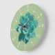 Cute garden green succulent print clock with white roman numerals and tick marks for hours and minutes.