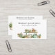 This business card features a watercolor illustration of garden pots, plants, tools, and a watering can. Designed for plant shops, florists, landscapers, or garden-related businesses, it highlights a nature-focused and handmade style. A professional way to share your contact details while reflecting your work with plants and gardening.