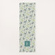 Custom printed yoga mat personalised with your monogram initial or other text. This cute girly design features a whimsical botanical pattern in teal blue, green, and aqua colours. Use the design tools to edit the monogram fonts and colours or upload your own photos.