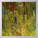 This painting titled Garden with crucifix is made by the famous artist, Gustav Klimt.